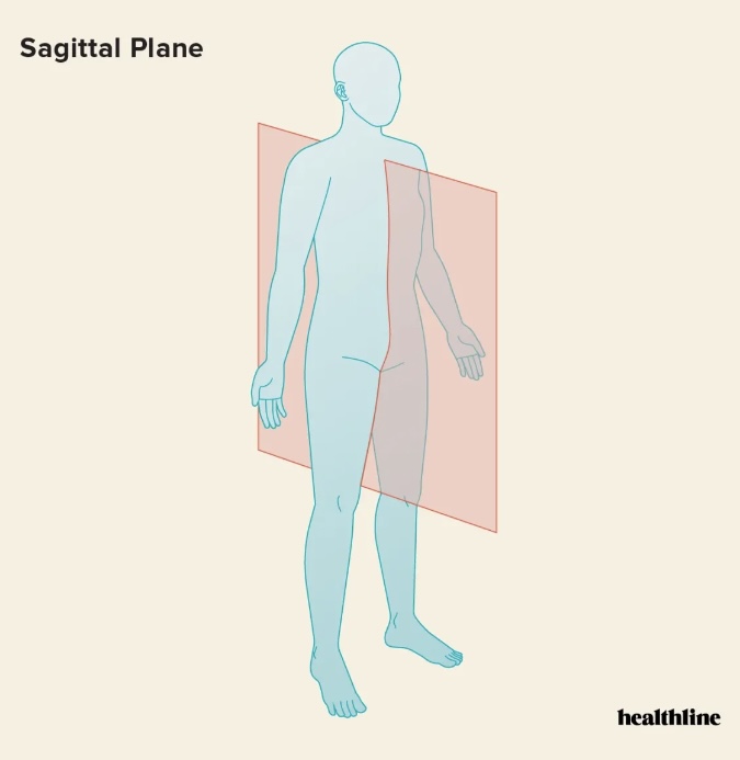 الاتجاه الذي يقسم الجسم إلى اليمين واليسار، والحركات فيه تكون إلى الأمام والخلف، فوق وتحت، مثل: المشي، السكوات، اللانج إلى الأمام أو الخلف وغيرها من التمارين المختلفة.